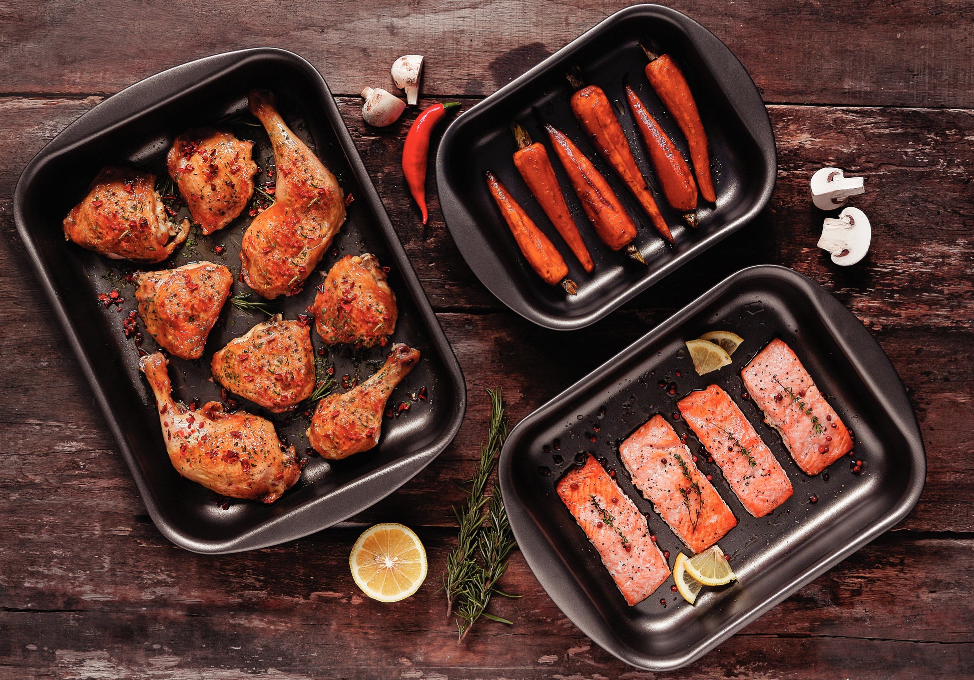 鶏肉2枚とお野菜を切ってグリルパンに並べてオーブンで焼いたり。